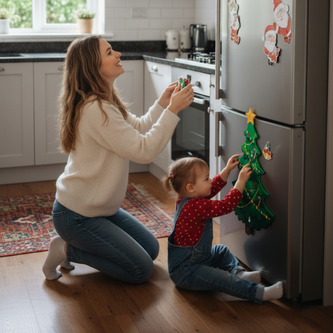 Our magnetic Christmas decorations make it effortless to reconnect — a few minutes of decorating turns into smiles, giggles, and proud little hands at work.